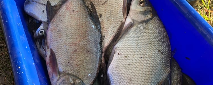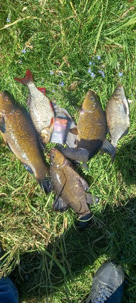 В пятницу, 17 мая, Евгений на водохранилище ловил с 4.30 до 13.00 на фидер. По словам рыбака, хорошо клевало с 7.30 до 12. Его улов — несколько увесистых линей, плотва и подлещик.