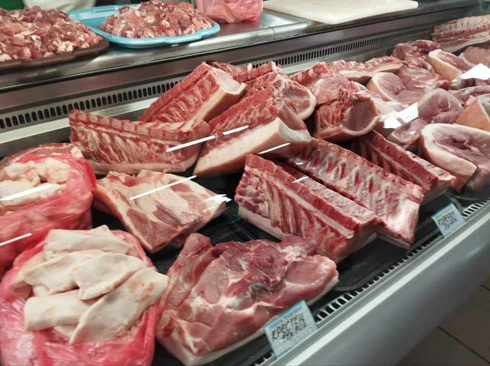 –На рынке есть большой павильон, где торгуют свежим мясом. Цены на мясо следующие: