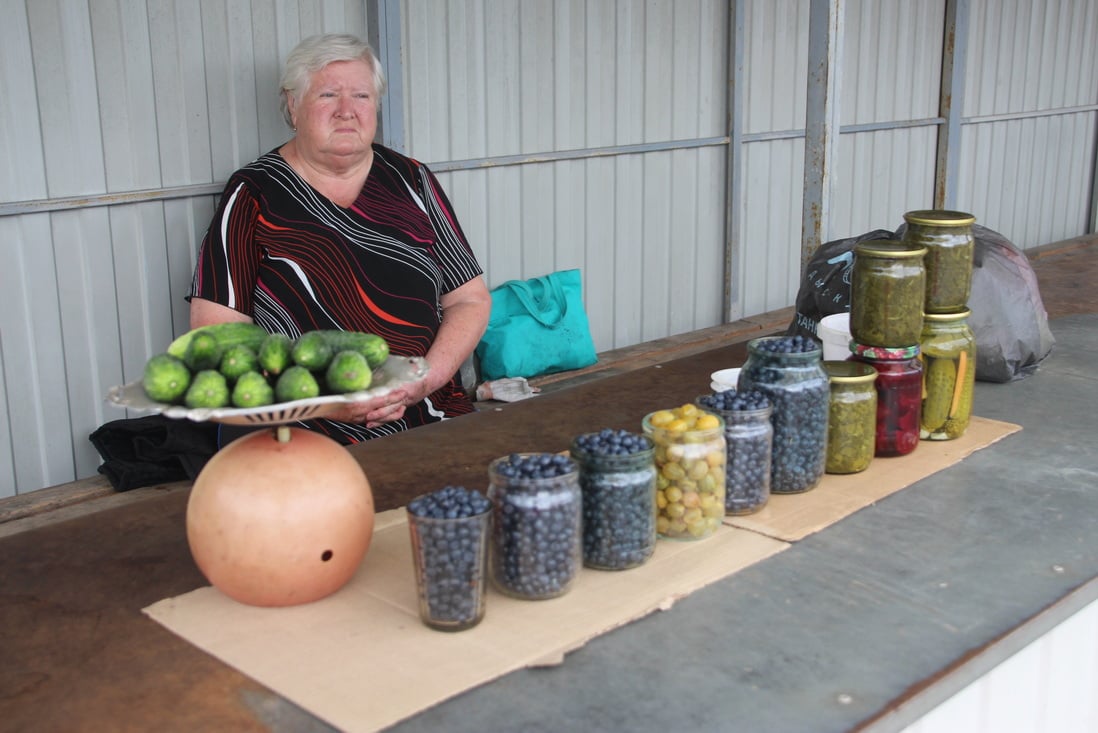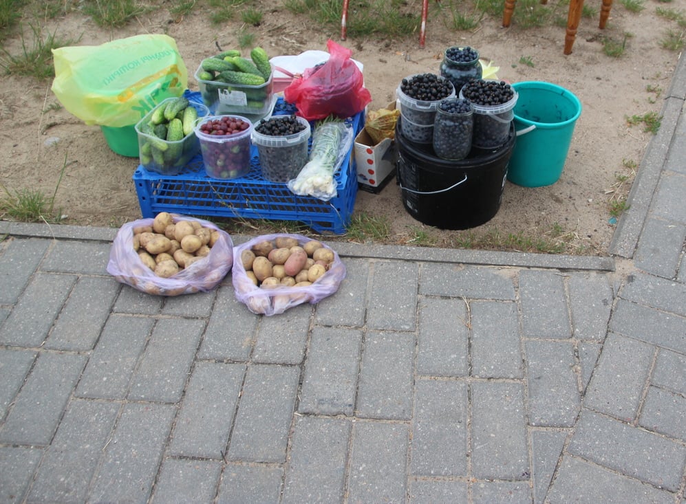 За территорией рынка несколько продавцов торговали огурцами, картофелем, черникой, красной и черной смородиной, малиной и другими овощами и фруктами. Цены были следующие: