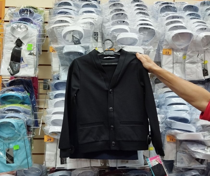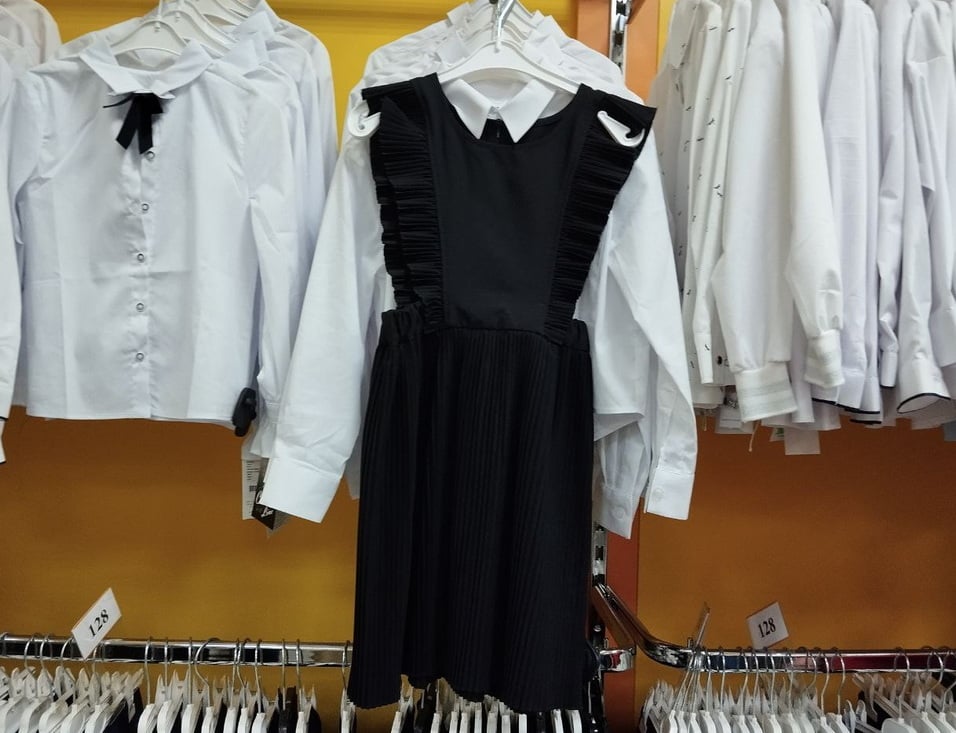 В магазине «Апельсин», где продается школьная одежда, продавцы заметили, что цены на некоторые позиции остались на уровне прошлого года, а ассортимент товаров значительно увеличился. Школьная форма для девочки (юбка и жилетка) стоит 96 руб., без блузки, а для мальчика (брюки и жилетка) — 105 руб., без рубашки. В магазине действует множество скидок и акций, которые позволяют значительно снизить стоимость покупки. По словам продавцов, родители уже активно приобретают школьную форму, особенно сейчас, когда проводятся акции со скидками до 40%.