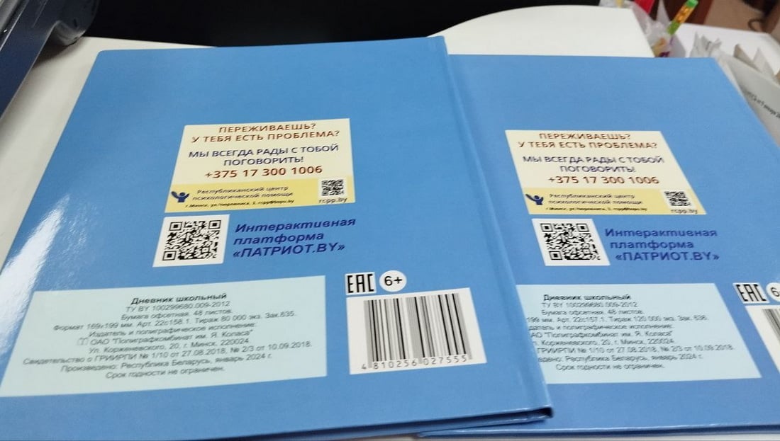 Кстати, в этом году выпустили новые школьные дневники, которые претерпели некоторые изменения в дизайне. Лицевая сторона осталась неизменной, с изображением герба и флага Беларуси, а также фото Площади Победы в Минске. Однако на обратной стороне обложки появились изменения. Теперь на ней напечатан текст с контактами службы психологической поддержки Республиканского центра психологической помощи как в белорусскоязычном, так и в русскоязычном вариантах.