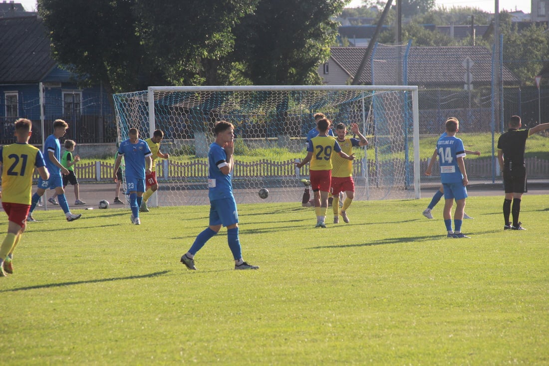 А на 12-й минуте мяч неожиданно для всех оказался в сетке ворот слонимской команды. Это, безусловно, немного обескуражило слонимских футболистов, но они быстро наладили свои атаки и в конце первого тайма слонимчане были ближе к голевому успеху, чем соперник.