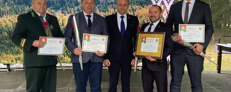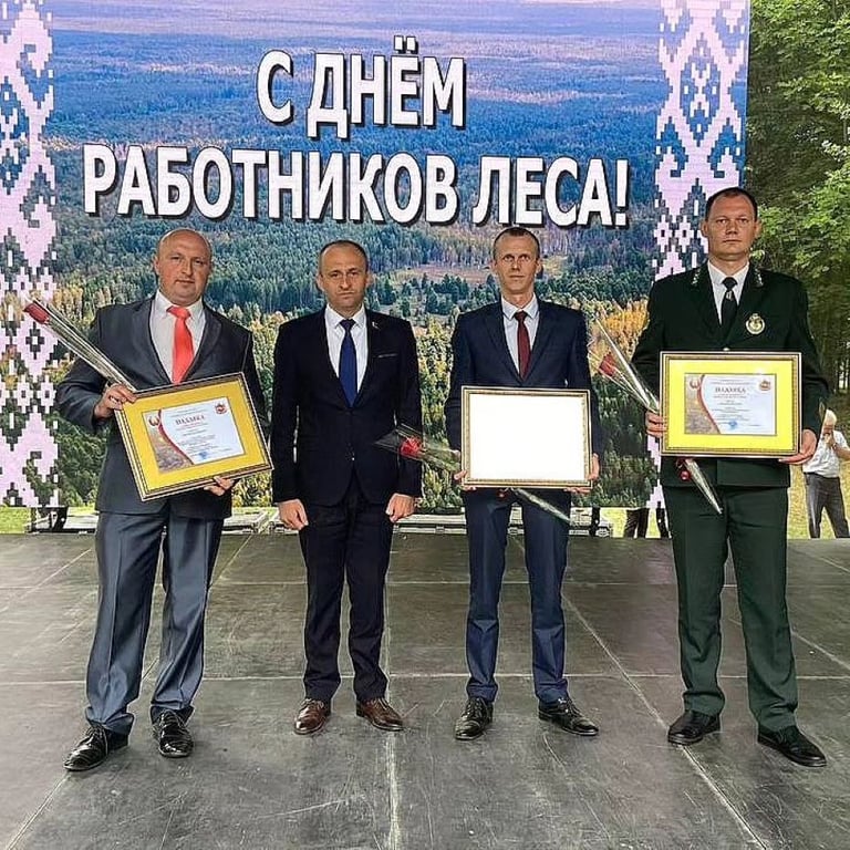 Благодарственное письмо председателя Гродненского облисполкома вручено директору Слонимского лесхоза Илье Видуку и машинисту трелевочной (лесозаготовительной) машины Александру Казакову.