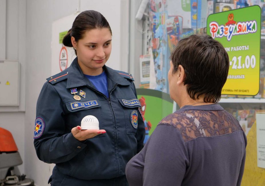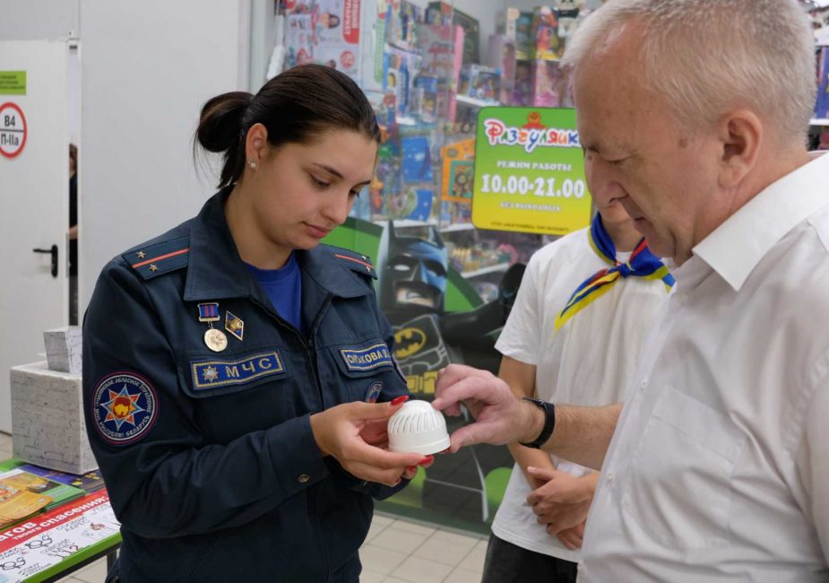 Спасатели рассказали посетителям магазина о пользе автономных пожарных извещателей и посоветовали установить его в своих жилищах.