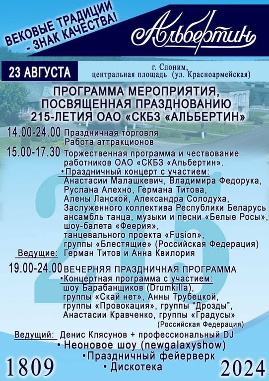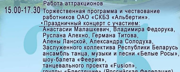 Программа празднования 215-летия СКБЗ «Альбертин: