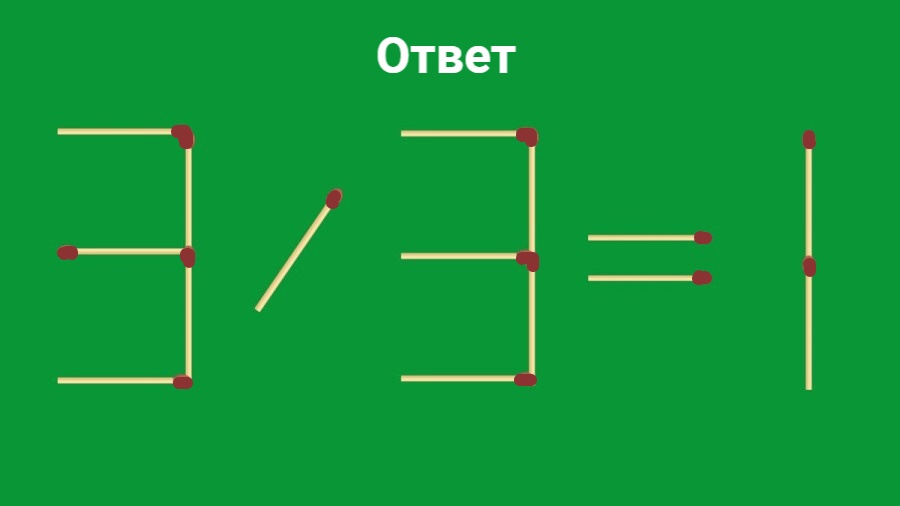 Сегодня мы предлагаем вам такой полезный и увлекательный способ занять свои руки и голову. Попробуйте за 20 секунд справиться с примером — найдите неправильную спичку и переставьте ее на нужное место, так чтобы уравнение стало верным. Как думаете, у вас это получится?