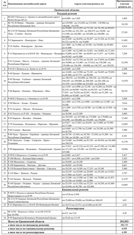 В списки включены как местные автомобильные дороги, так и республиканские. Жителям Гродненщины, думается, будет интересно узнать, где реконструируют и капитально обновят дорожное покрытие на территории вашего района и не только.