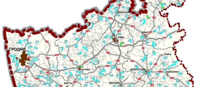 Карта-схема участков местных автомобильных дорог, планируемых к проведению дорожных работ в 2024 году в Гродненской области