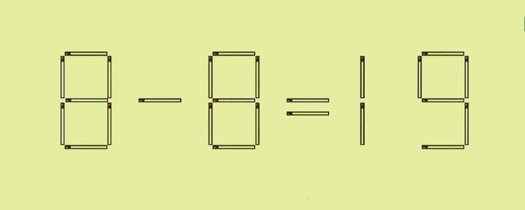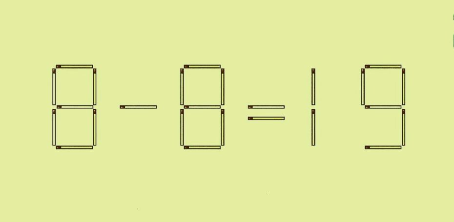 От вас всего лишь требуется переставить спичку в простом примере: 8–8=19. Пример должен превратиться в верное равенство за 30 секунд.