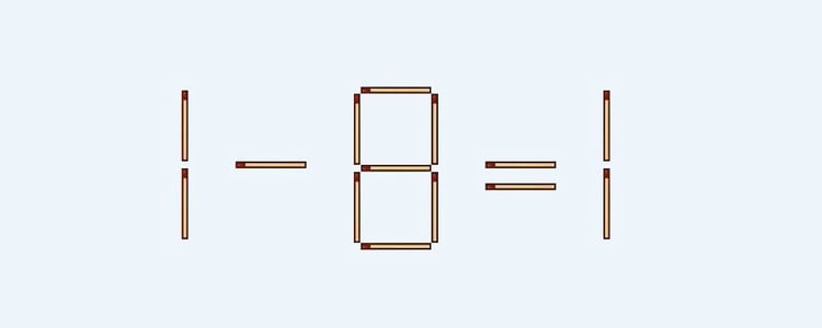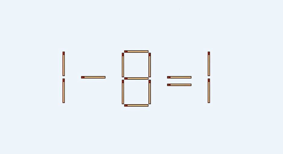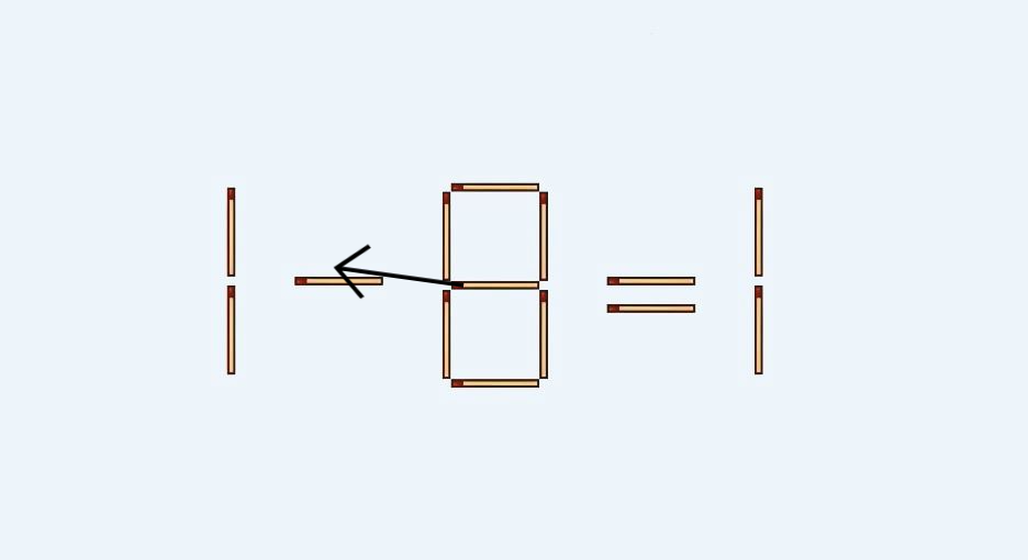 В 1–8=1 нужно переместить на другое место 1 спичку, так чтобы неверное равенство стало правильным.