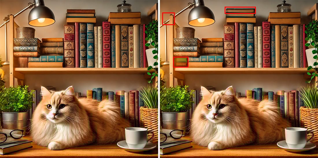 ТЕСТ на внимательность: найдите 3 отличия с котиком в библиотеке
