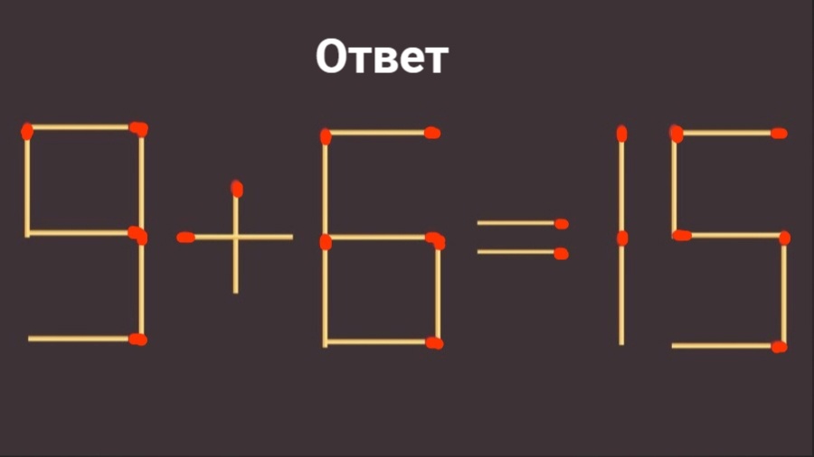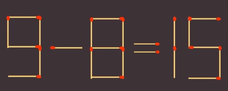 Попробуйте решить пример за 25 секунд: 9 + 8 = 15. Для этого достаточно передвинуть лишь одну спичку. Если вам удастся решить задачу за отведённое время, вы заслуживаете подарка за свою смекалку.