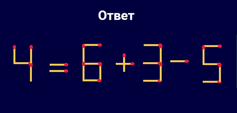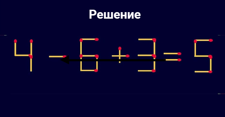 Если сможете менее чем за 25 секунд переложить 1 спичку в неверном равенстве 4-6+3=5, так чтобы оно стало правильным — вы подтвердите свое мастерство в умении решать сложные головоломки и не только. Скорее всего вы мастерски справляетесь со многими делами.