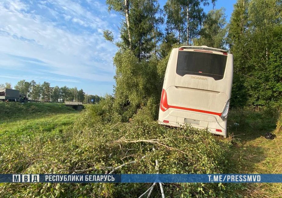 По предварительным данным, в Дзержинском районе водитель автобуса международного сообщения Москва — Брест не справился с управлением и съехал в кювет, после чего автобус врезался в деревья.