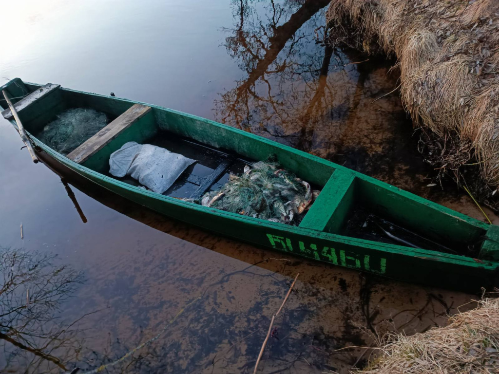 Еще одного нарушителя задержали в Столинском районе. На берегу р.Чаква работники инспекции заметили мужчину, который на резиновой лодке с веслами ловил рыбу запрещенными орудиями рыболовства. В период запрета при помощи 4 рыболовных сетей мужчина незаконно добыл 23 особи различных видов рыб. Вред, причиненный окружающей среде, составил 111 базовых величин (4440 руб.).