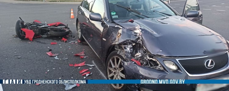 Устанавілі, што 23-гадовы кіроўца легкавіка “Лексус” ехаў на скрыжаванні з Лідскай вуліцы ў бок Румлёўскага праспекта ў Гродне, выконваў паварот улева з паласы, якая дазваляе толькі рух прама, праявіў няўважлівасць, не пераканаўся ў бяспецы, не ўступіў дарогу і сутыкнуўся з сустрэчным матацыклам “Мінск” пад кіраваннем 28-гадовага матацыкліста.