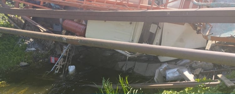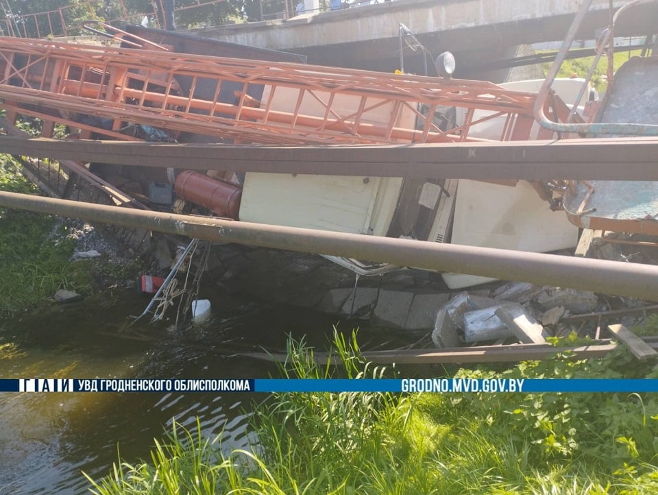Калі кіроўца пачаў пераязджаць, а яго напарнік знаходзіўся на рабочай пляцоўцы, пад вагой грузавіка мост абваліўся.