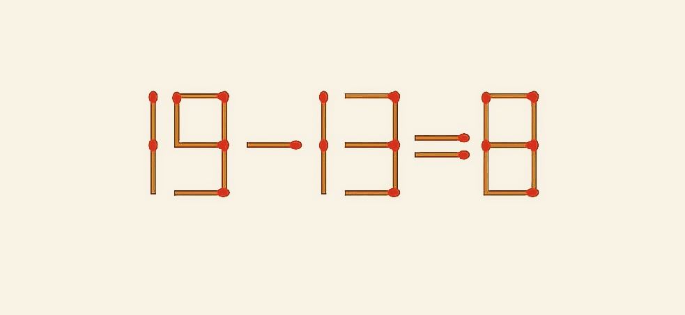 Удачникам под силу переставить 1 спичку в 19–13=8 за несколько секунд. Проверите свою удачливость?