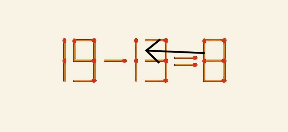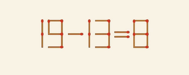 …Надеемся, мы настроили вас на успех и позитив? Для удачников сегодня следующее задание. Следует 19–13=8 превратить в верное равенство. Воспользоваться для этого можно лишь 1 спичкой. Время — 30 секунд. И оно уже пошло!