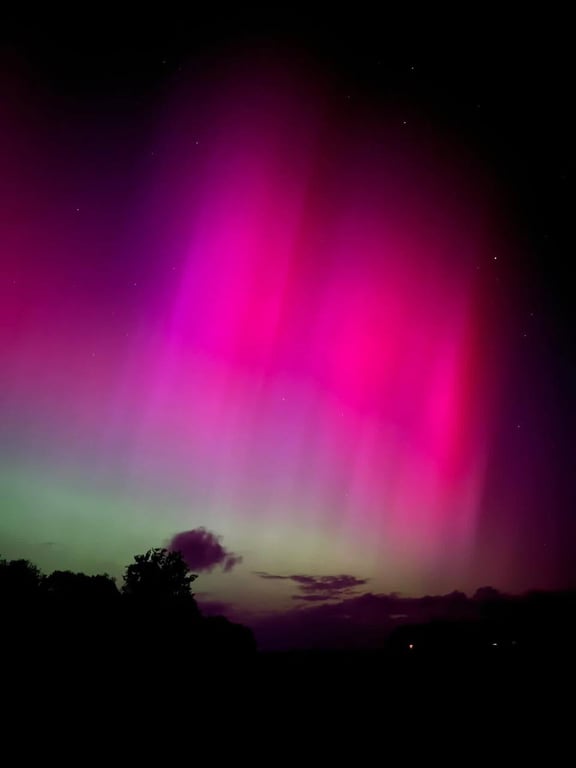 Северное сияние, обычно наблюдаемое в полярных регионах, на этот раз разукрасило ночное небо Беларуси в яркие оттенки розового и зеленого. Фотографии этого завораживающего зрелища были опубликованы местными жителями в социальных сетях, вызвав восторг и удивление у людей.