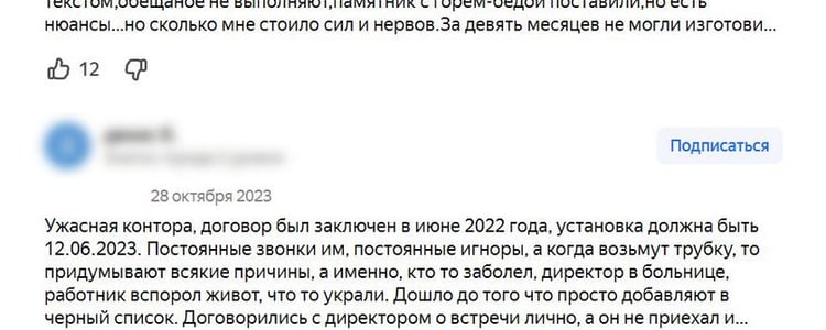 Когда в обществе возник резонанс по поводу сложившейся ситуации, а в Интернете появились негативные отзывы о работе фирмы, то клиенты поняли, что с неразрешимой проблемой по установке памятников и возврату денег они столкнулись не одни. О случившемся сообщили в правоохранительные органы.