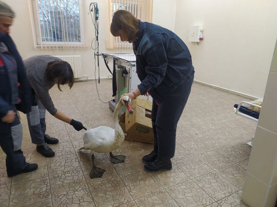 По виду птица была очень ослаблена. Сотрудники инспекции приняли необходимые меры для оказания лебедю помощи.