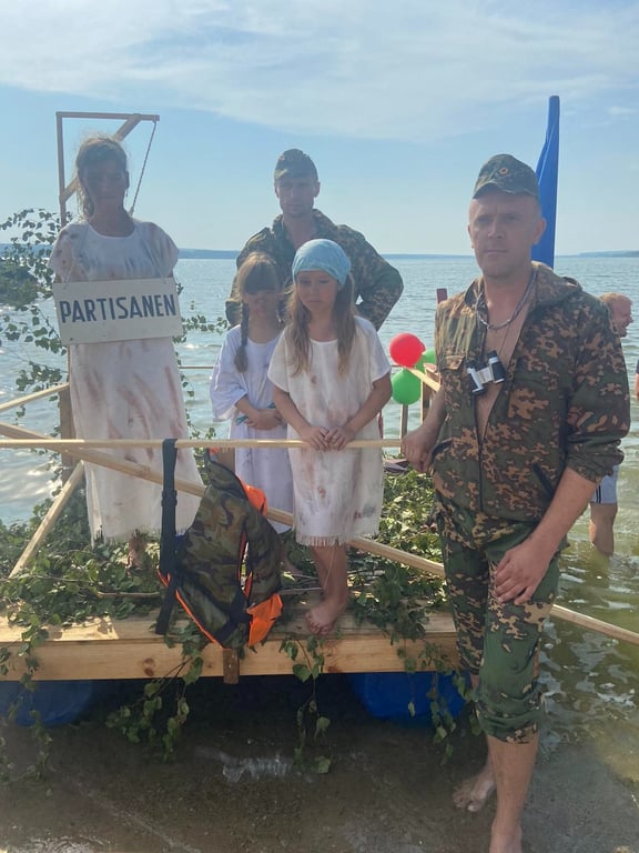 В конкурсе «Плавание на чем попало» слонимчане показали тему геноцида белорусского народа в годы войны