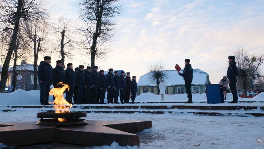 В преддверии профессионального праздника – Дня спасателя — 18 января у памятника Воину-Освободителю состоялся торжественный ритуал принесения Присяги новобранцами Слонимского райотдела МЧС.