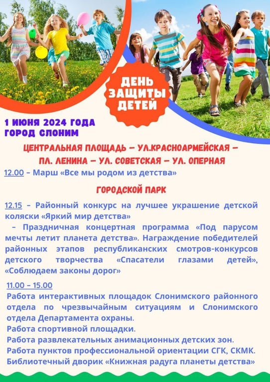 В Слониме 1 июня, в День защиты детей, состоится большой праздник.