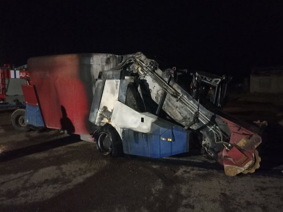 В 05:40 в деревне Слонево произошёл пожар в самоходном смесителе-кормораздатчике на территории сельхозпредприятия. Пожар повредил кабину, моторный отсек и передние колеса техники.