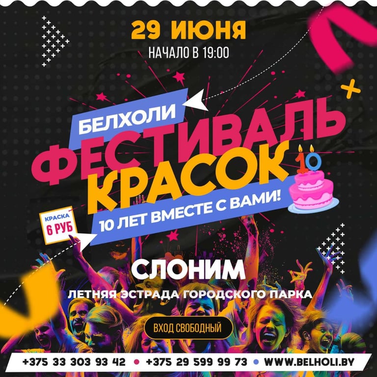 В этом году фестивалю красок Белхоли в Беларуси исполняется 10 лет. В честь этого праздник красок приедет в более 200 городов страны, один из которых – Слоним.