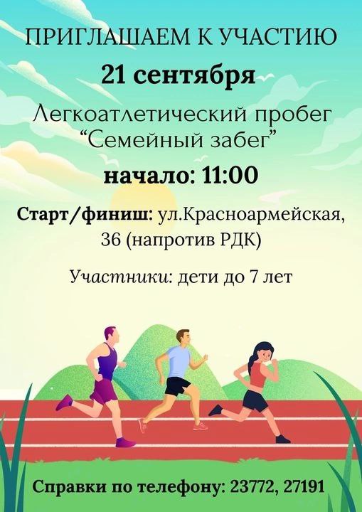 В субботу, 21 сентября, в Слониме пройдет легкоатлетический пробег «Семейный забег».