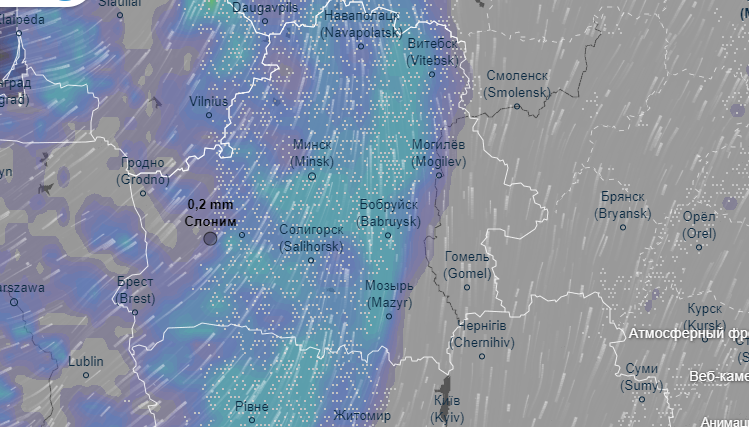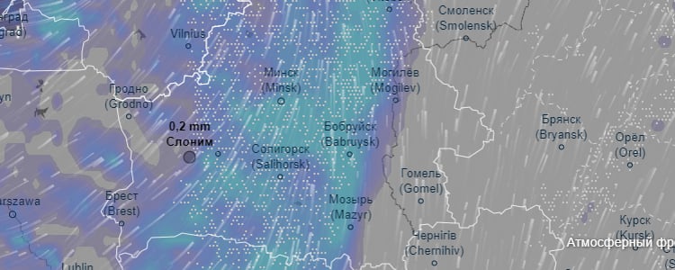 Согласно данным сервиса по мониторингу погоды Ventusky, снежная волна покинет Слоним сегодня примерно после 18 часов.