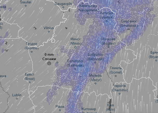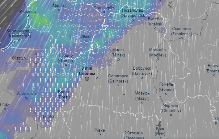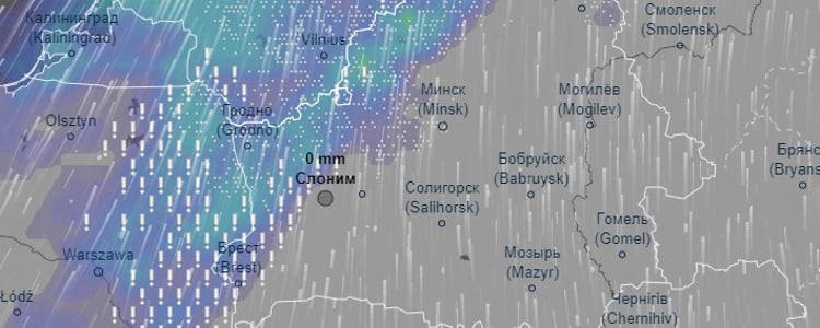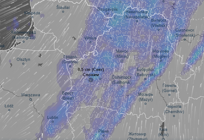 Как следует из данных сервиса, снежная волна подступится к Слониму сегодня, 22 января, после 22 часов. Снег будет идти вперемешку с замерзающим дождем.