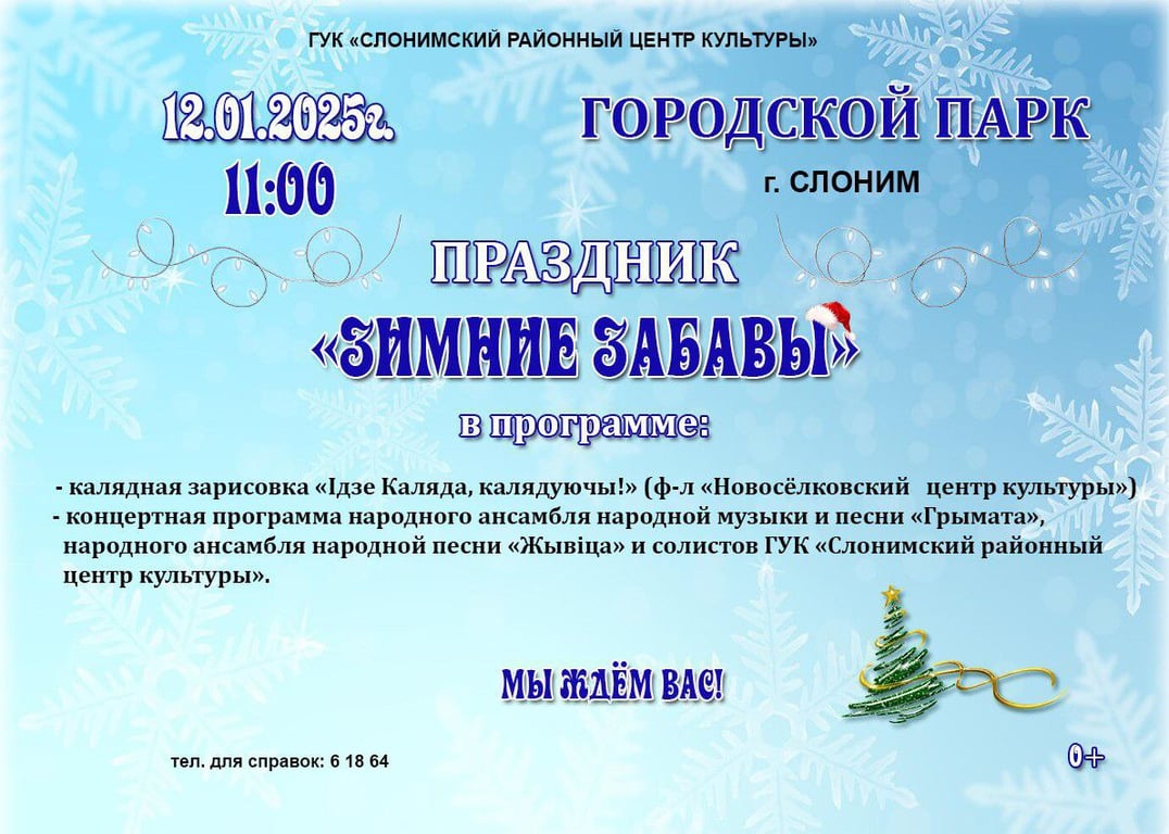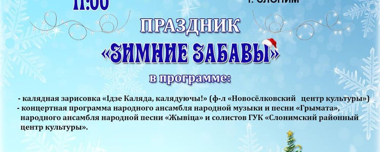 В воскресенье, 12 января, в городском парке Слонима пройдет праздник «Зимние забавы».