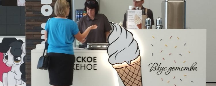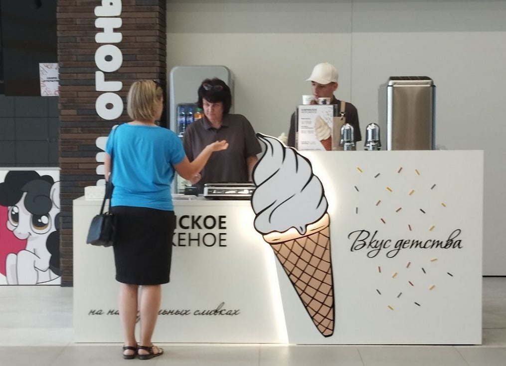Здесь продают кобринское мороженое, которое рекламируется как «вкус детства».