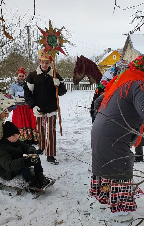 В Слонимском районе провели реконструкцию старинного белорусского обряда. Его участники прошли дорогой бывших колядовщиков, которые везли к дубу маленького мальчика и праздничную кашу, чтобы почтить великий праздник Крещения и попросить Бога заступничества и богатый урожай.