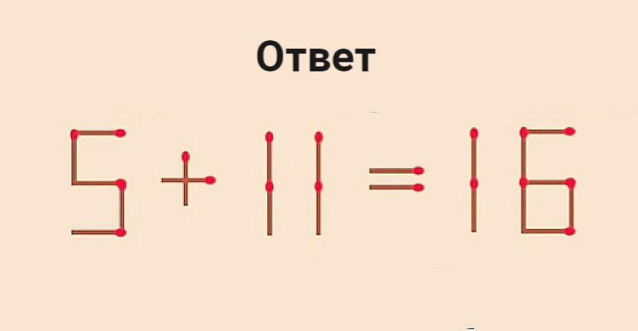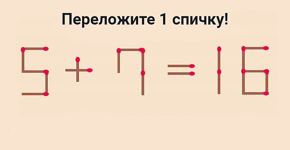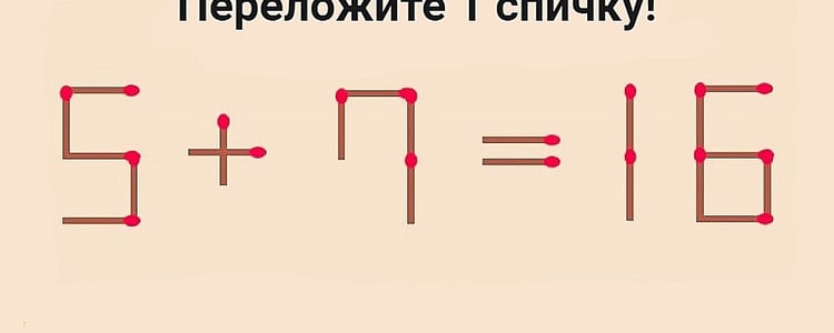 В вас дремлет дар, если исправите пример 5+7=16 за 20 секунд одной спичкой