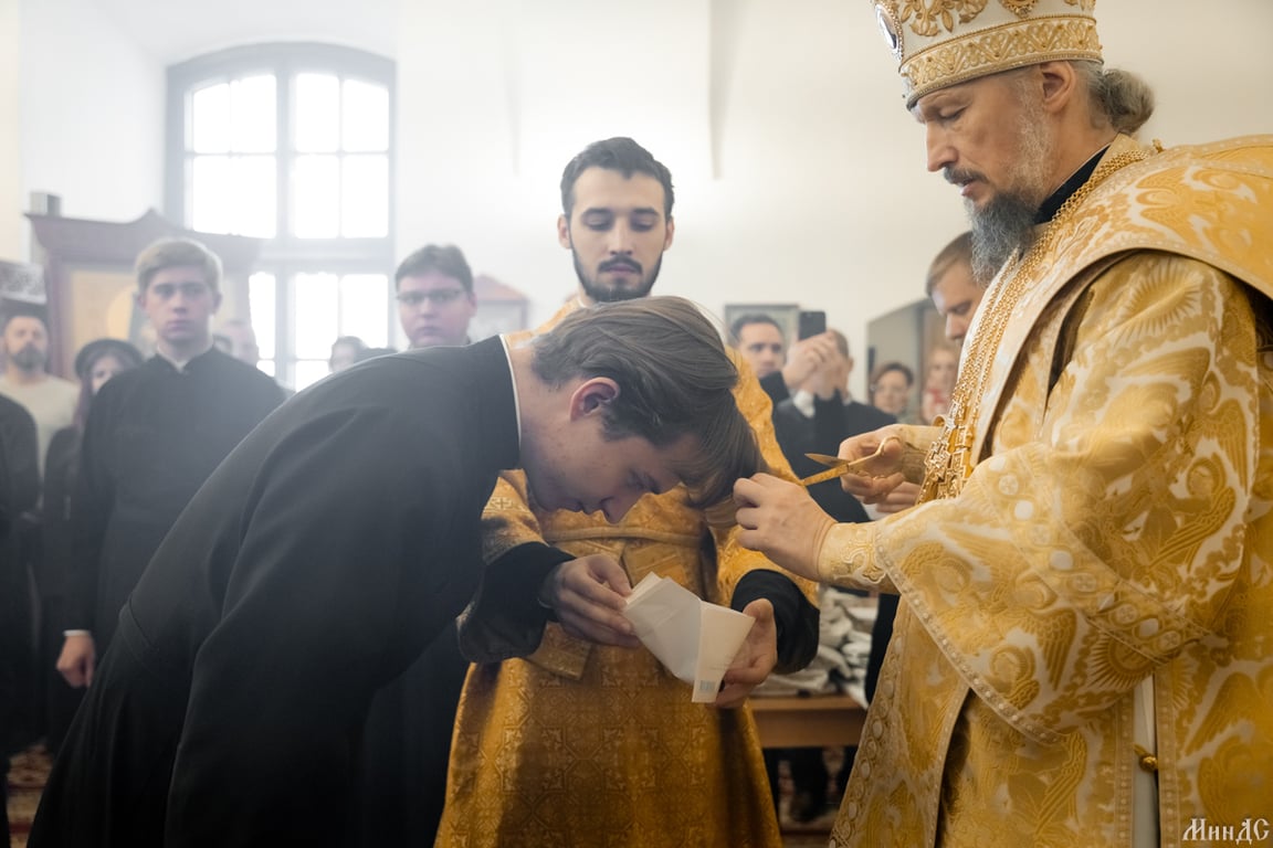 После торжественной встречи и входных молитв митрополит Минский и Заславский Вениамин, Патриарший Экзарх всея Беларуси, совершил постриг в чтецов студентов выпускного курса и сотрудников семинарии.