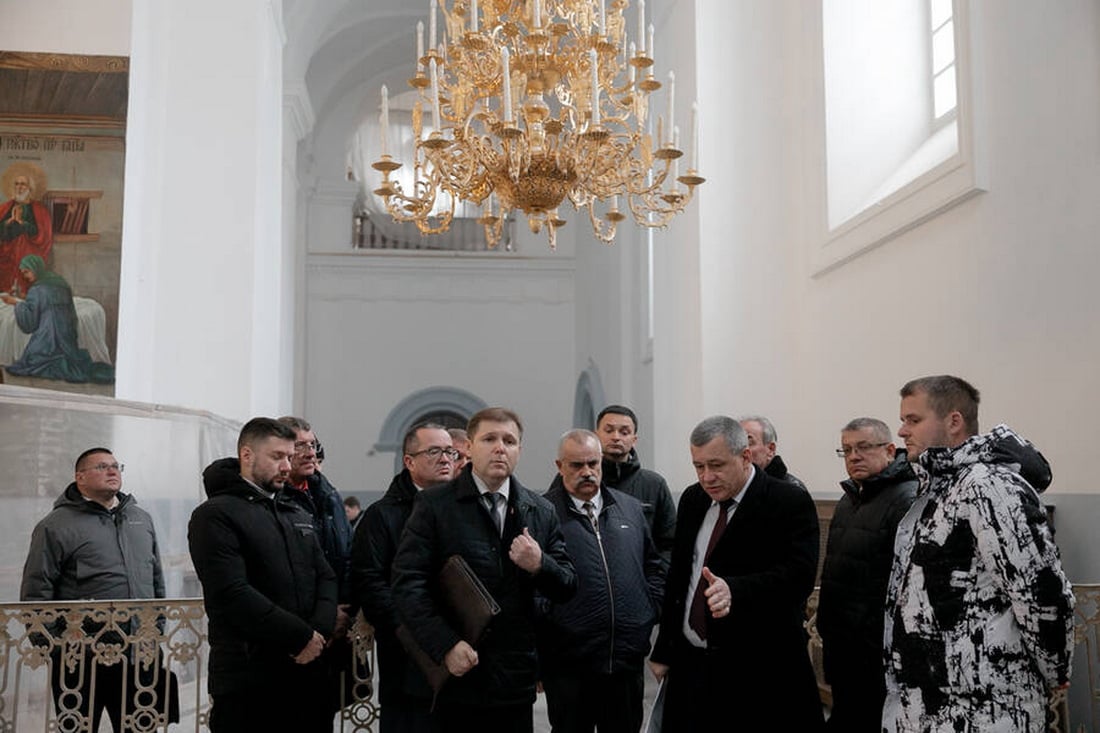 В начале визита участники осмотрели Успенский собор, где ознакомились с текущими реставрационными работами, после чего обсудили дальнейшие шаги в актовом зале монастыря.