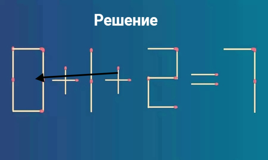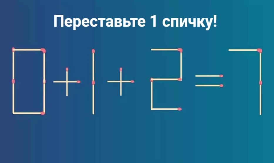 Предлагаем простой способ проверить, насколько вы богаты умом! Для этого требуется решить несложный пример, в котором нужно переставить одну спичку в другое место: 0+1+2=7.