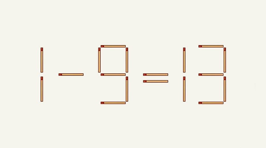 Вас наделили высшие силы необычным даром, если сможете переставить 1 спичку в 1–9=13