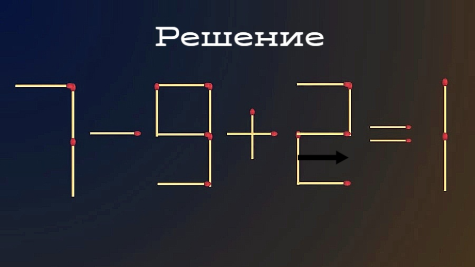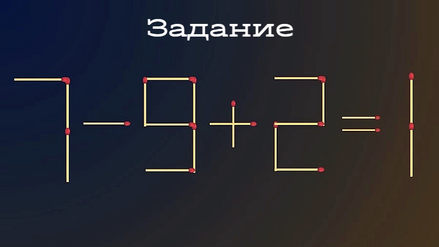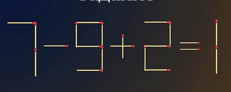 Условия задачи просты: нужно переставить на другое место 1 спичку в примере 7-9+2=1. Тут есть над чем пораскинуть мозгами. Знания школьной математики тоже пригодятся.