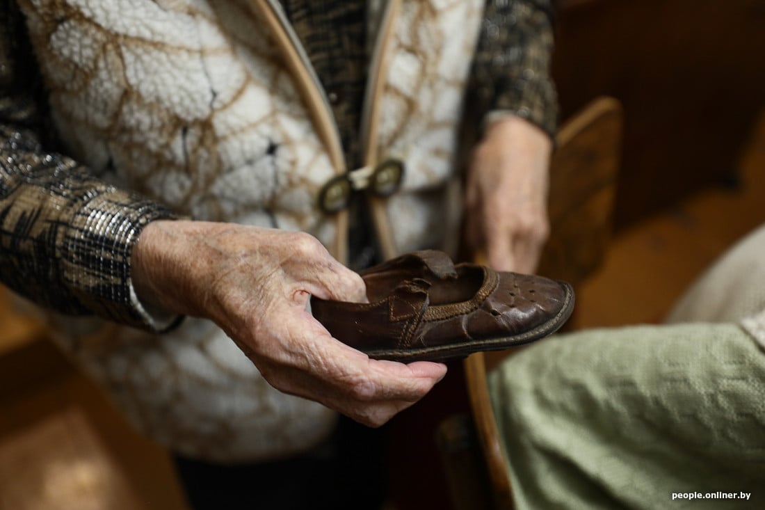 — Боже, Волковыск произвел такое страшное впечатление: осталась только половина вокзала… У меня были длинная свитка, сшитая из одеяла, шерстяные чулки до колена и брезентовые туфли, а за спиной — мешок с сухарями. Когда я выбиралась из поезда, у меня в этой туфле отвалилась подошва. И я думала: как же я этот последний отрезок пути дойду? Пришлось волочить ногу весь путь до дома.