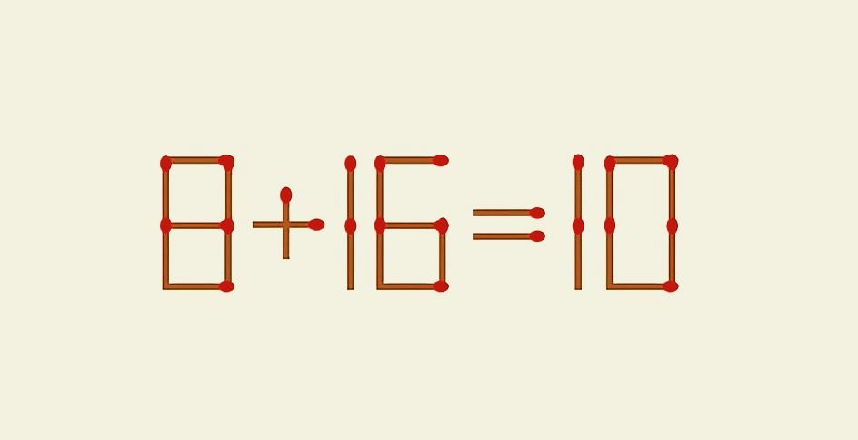 Вы гениальный математик, если сможете переставить 1 спичку в 8+16=10