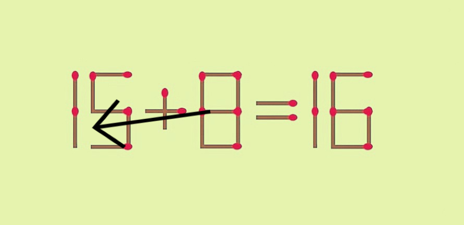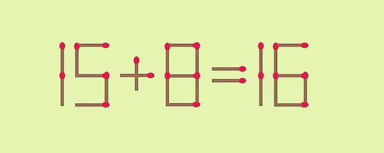 Вы интеллектуально развитый человек, если сможете переставить 1 спичку в 15+8=16