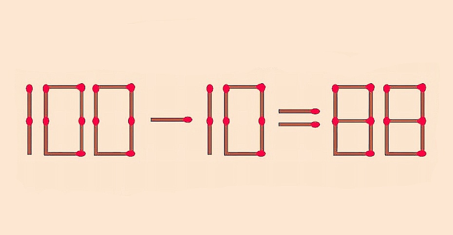 Вы король мозговых головоломок, если переставите 1 спичку в 100–10=88