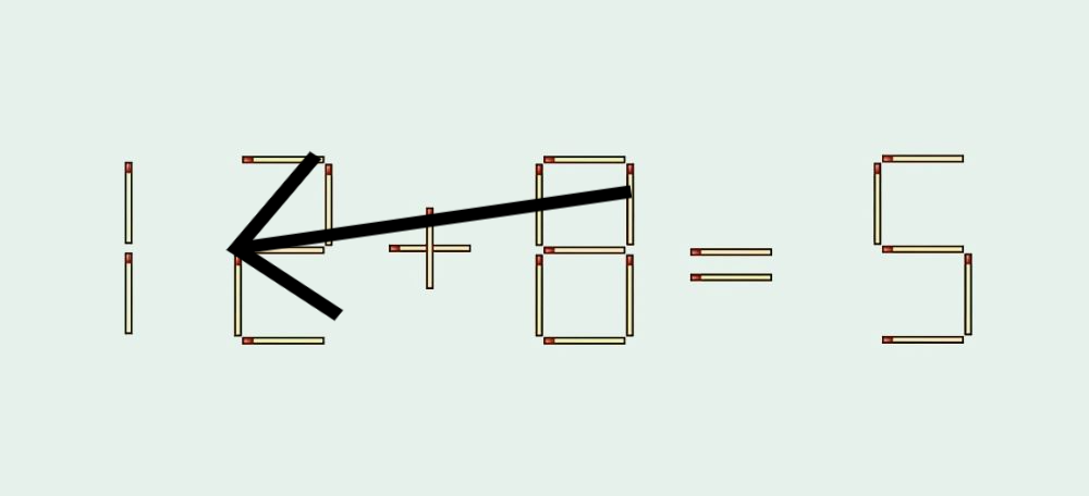 …Итак, немного пофилософствовали для создания определенного настроя, а задание для любителей головоломок сегодня такое. Дано неверно решенное равенство: 12+8=5. Как всегда, следует найти ту единственную спичку и то место для нее, чтобы равенство стало верным.