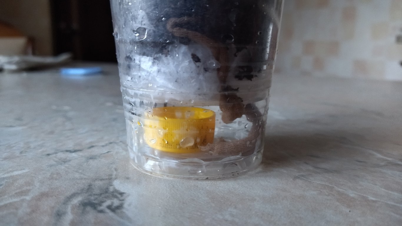 Поместите стакан с землей в стакан с водой так, чтобы фитиль оказался погруженным в воду.