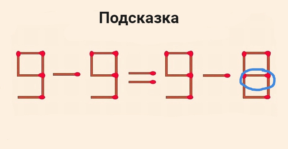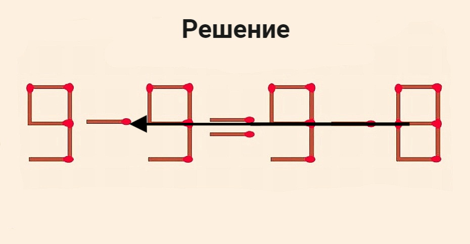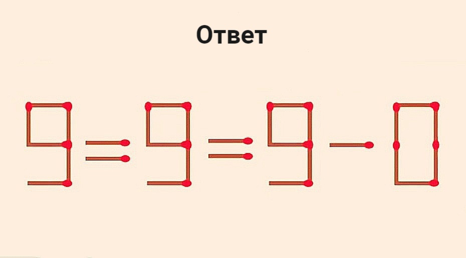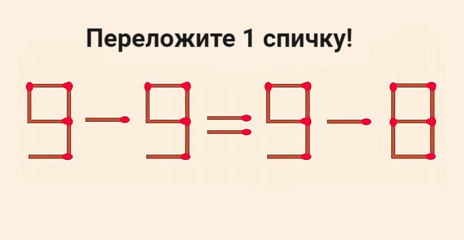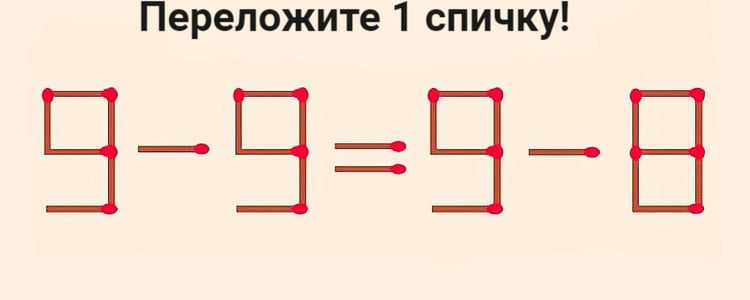 Вызов вашему уму: переставьте в равенстве 9-9=9-8 всего 1 спичку, чтобы оно стало верным